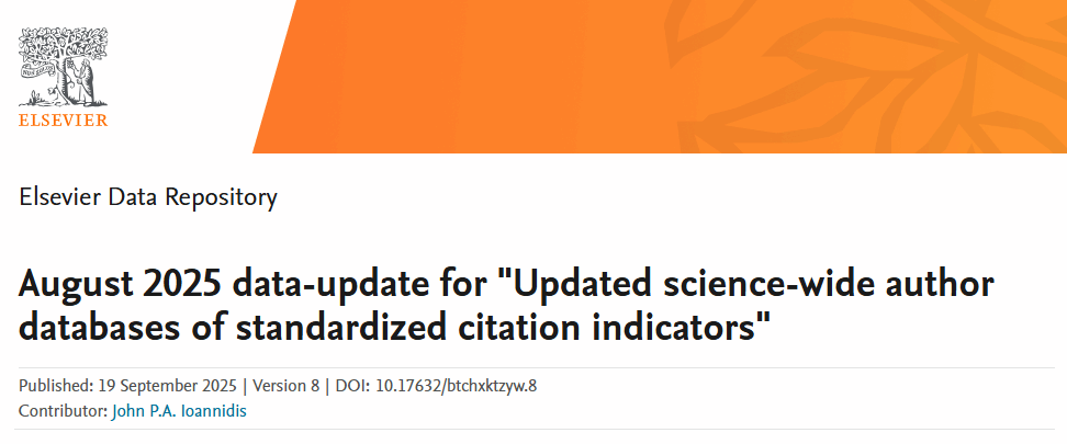 全球前2%顶尖科学家榜单分为“终身科学影响力排行榜(Career-long Impact)”和“年度科学影响力排行榜(Single-year Impact)”两大部分,从全球近700万名科学家中,通过基于其论文引用数、h因子、合著者修正的hm因子、单独或第一作者的文章引用数等综合参数,遴选出世界排名前2%的科学家,涵盖22个领域和174个子领域。其中,“终身影响力”榜单统计科学家职业生涯期间的综合表现,“年度影响力”榜单则聚焦上一年度的学术影响力。